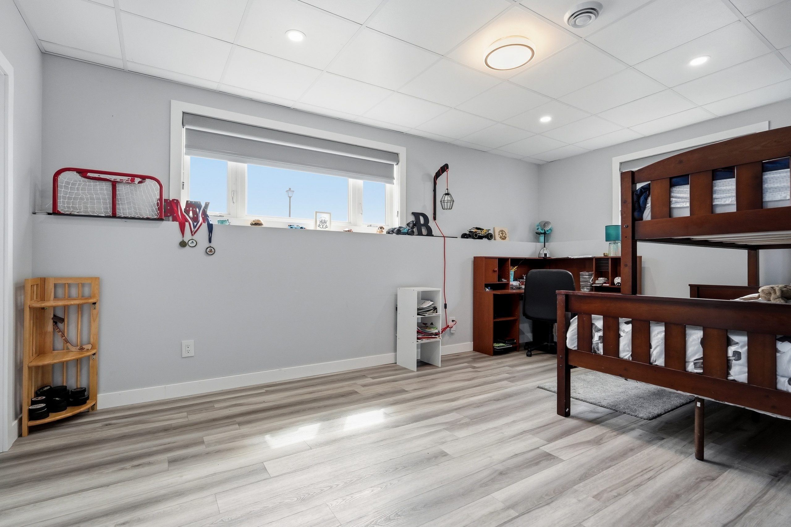 The fully fenced backyard includes a rear deck with gas BBQ hookup. The oversized garage is fully heated and insulated, making it ideal for vehicles, hobbies, or workshop space.