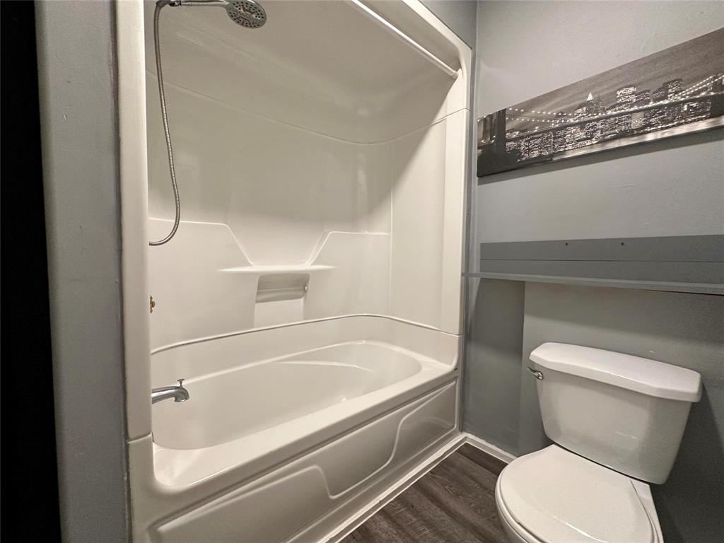 Bright & Airy: Large windows flood the space with sunlight, enhancing the warm ambiance of the hardwood and tile flooring.