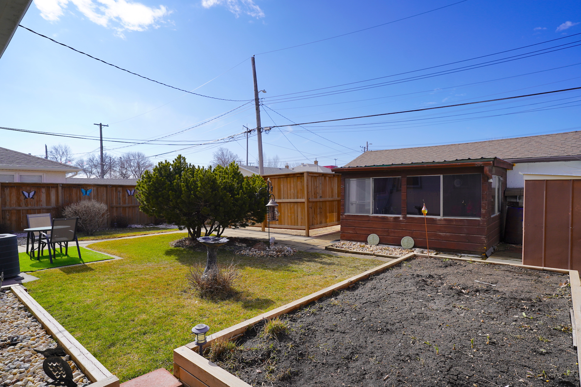 The backyard has been meticulously maintained with mature shrubs, colourful annuals, and full fencing. A charming gazebo provides the perfect setting for relaxing summer evenings or entertaining guests.