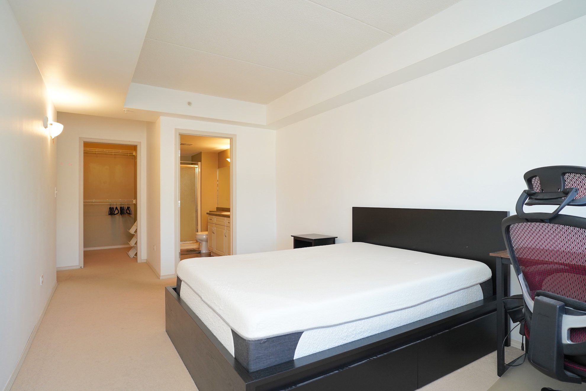The open-concept floor plan separates the two bedrooms and full bathrooms on opposite sides of the suite—perfect for roommates, guests, or privacy within your own space.
