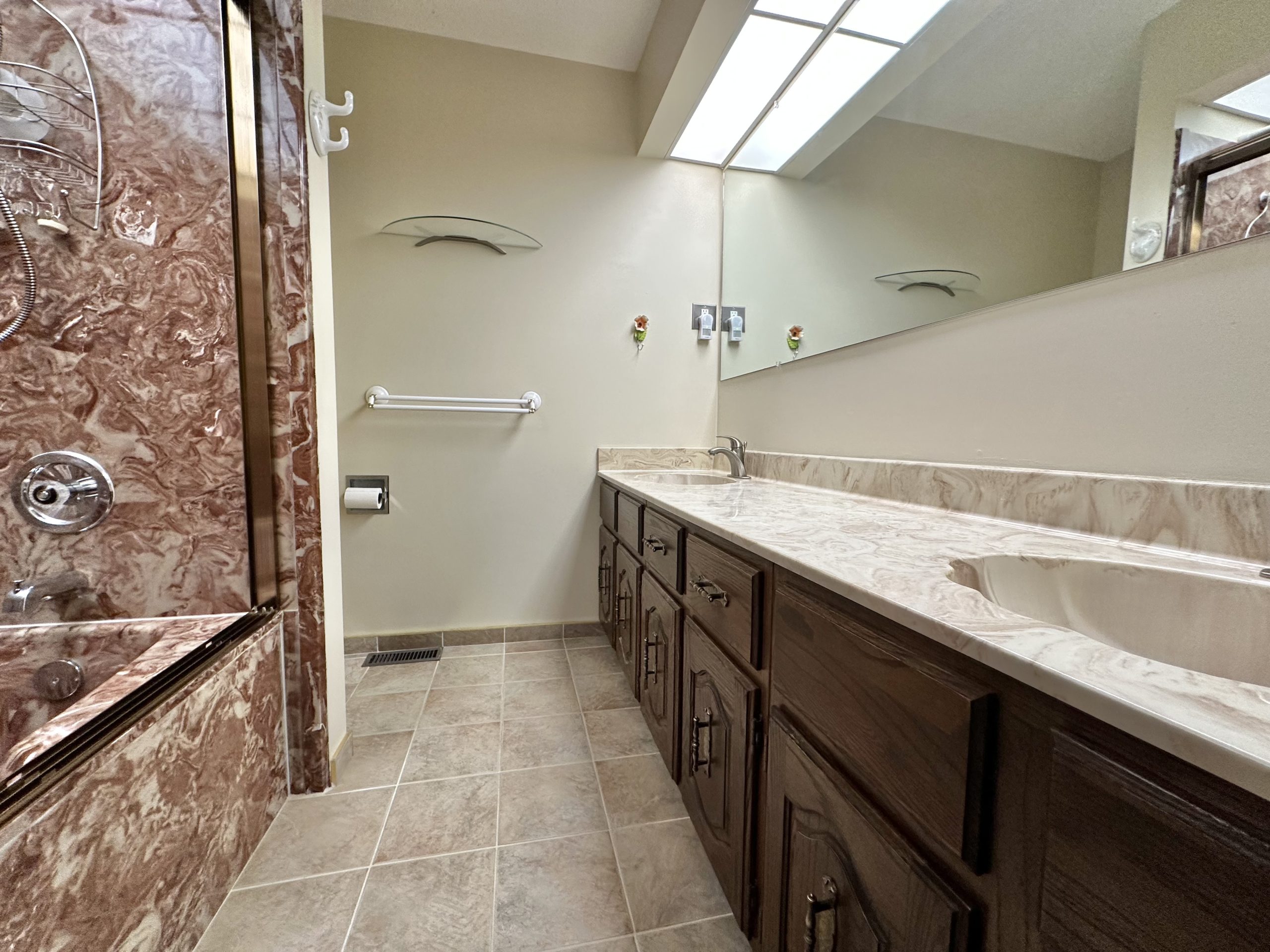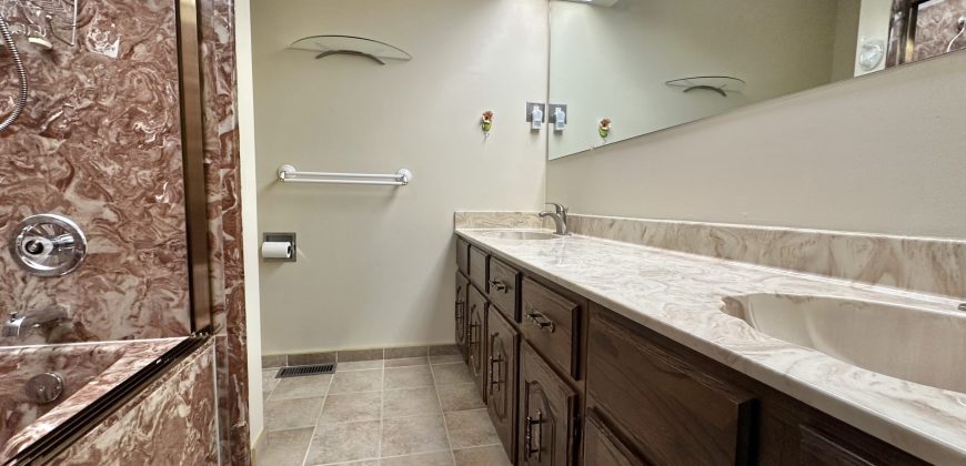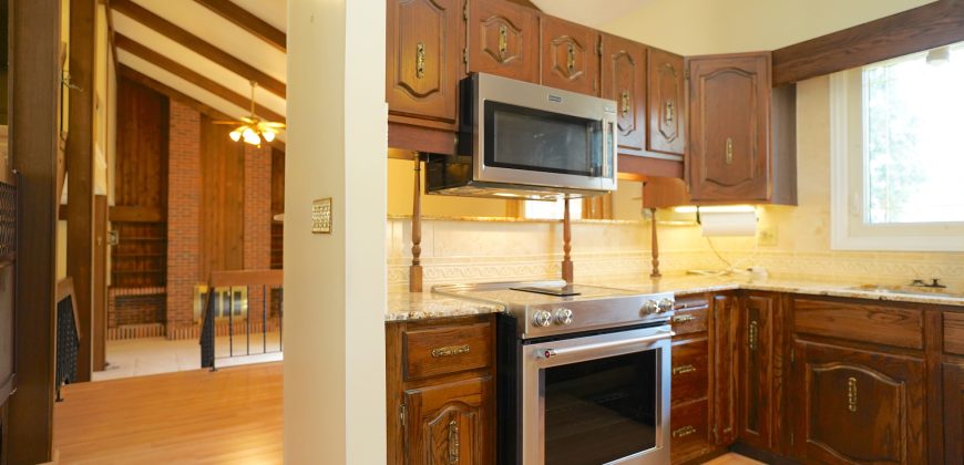 Upstairs, you’ll find three generous bedrooms, including an oversized primary suite featuring an ensuite bathroom and abundant closet space. The split-level layout enhances the sense of space, with the second floor overlooking the stunning open-to-below vaulted living area, creating a warm and connected atmosphere perfect for families and entertainers alike.